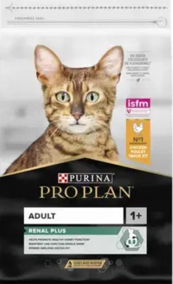פרו פלאן Renal Plus הינו מזון המיועד לחתולים בוגרים, המשפיע על איכות השתן והמינרלים המומסים בו, ובכך מסייע לשמירה על דרכי השתן והכליות. חתולים שהוזנו בפרו פלאן Renal Plus הראו שיפור משמעותי במדדי איכויות השתן לאחר 6 שבועות והוכיחו תפקודי כליות טובים יותר. המזון מכיל ויטמינים ונוגדי חמצון לתמיכה בבריאות ועמידות המערכת החיסונית של החתולים בפני זיהומים ומחלות. עשוי מבשר עוף כמרכיב ראשון, המבושל בתהליך ייחודי שמשר את איכות הרכיבים וערכיהם התזונתיים.